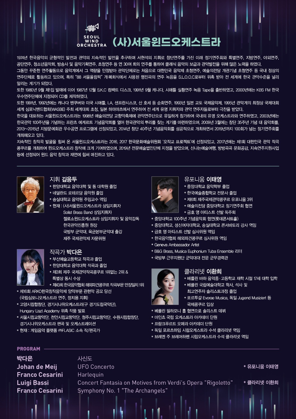 주최: (사)서울윈드오케스트라, 주관: 예인기획 02-586-0945