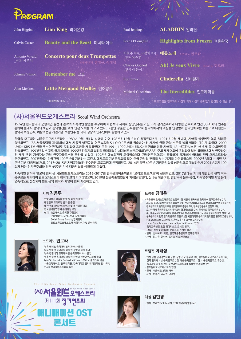 ■애니매이션 OST 콘서트 / (사)서울윈드오케스트라 제 111회 정기연주회 ■